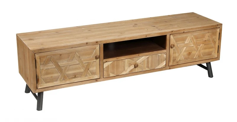Έπιπλο τηλεόρασης ξύλινο με μεταλλικά πόδια, με 2 ντουλάπια και 1 συρτάρι, σε φυσικό χρώμα από την ESPIEL - Διαστάσεις: 150χ40χ44,5εκ.