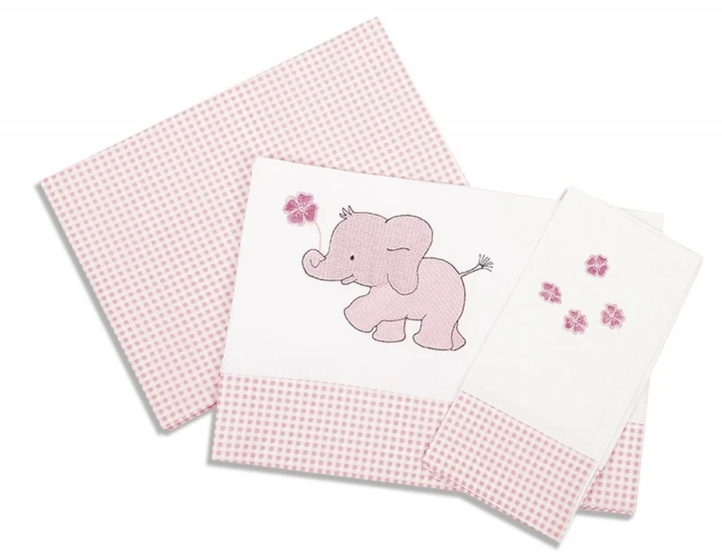 Σετ σεντόνια μπεμπέ 100% βαμβάκι περκάλι,144 κλωστών με κέντημα και φάσα σε λευκό - ροζ χρώμα Ελεφαντάκι 17 από την Dim Collection. Το σετ περιλαμβάνει: 2 σεντόνια 120x170εκ. και 1 μαξιλαροθήκη 30x40εκ.