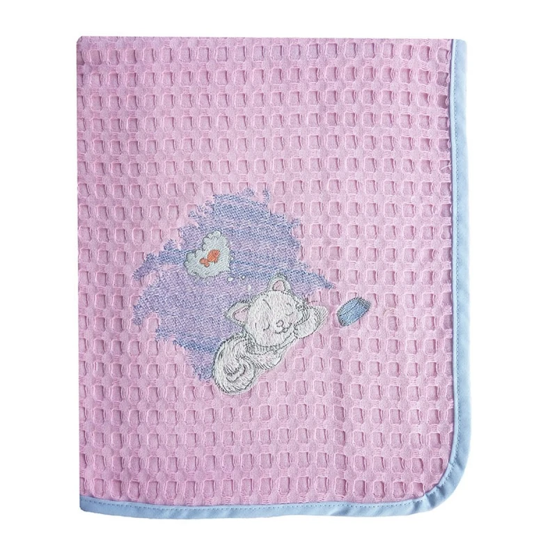 Κουβέρτα αγκαλιάς πικέ, 100% βαμβακερή, ιδιαίτερα απάλη με χαρούμενα κεντήματα και ρέλι σε ροζ - σιέλ χρώμα Γατάκι 127 από την Dim Collection - Διαστάσεις: 80x110εκ.
