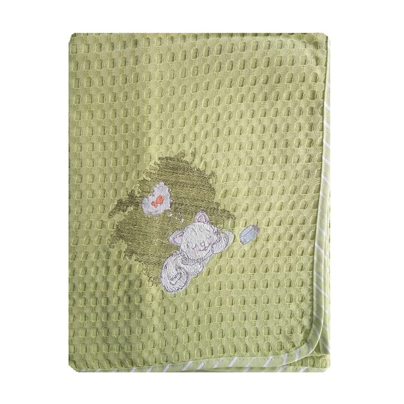 Kουβέρτα κούνιας πικέ, 100% βαμβακερή, ιδιαίτερα απάλη με χαρούμενα κεντήματα και ρέλι σε λαχανί χρώμα Γατάκι 128 από την Dim Collection - Διαστάσεις: 110χ160εκ.