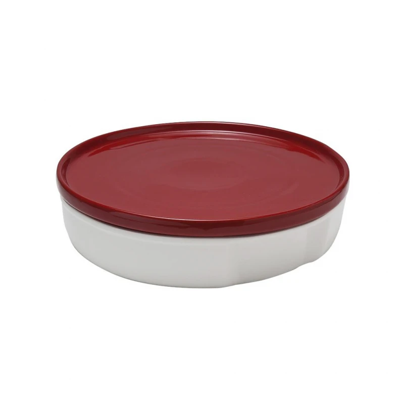Πυρίμαχο στρογγυλό σε λευκό χρώμα με κόκκινο καπάκι από την ESPIEL - Διαστάσεις : 30x30x8εκ.