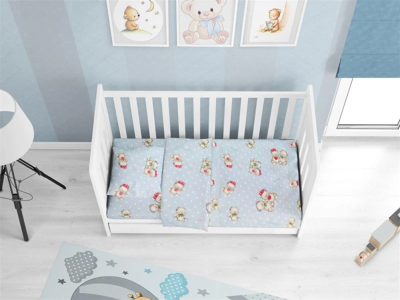 Παπλωματοθήκη Εμπριμέ Μπεμπέ 120x160εκ. Two Lovely Bears 64 Blue Dimcol