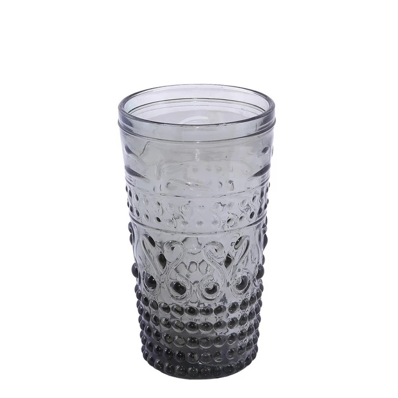 Ποτήρι νερού σετ 6τμχ ανάγλυφο σε γκρι χρώμα, 550ML από την ESPIEL - Διαστάσεις: 8,5x16εκ.