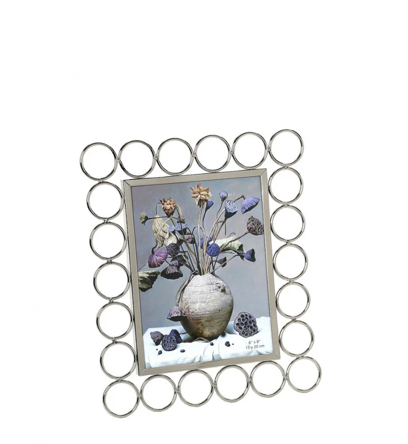 Κορνίζα μεταλλική, σχέδιο δαχτυλίδια, σε ασημί χρώμα από την ESPIEL - Διαστάσεις: 10x15εκ.
