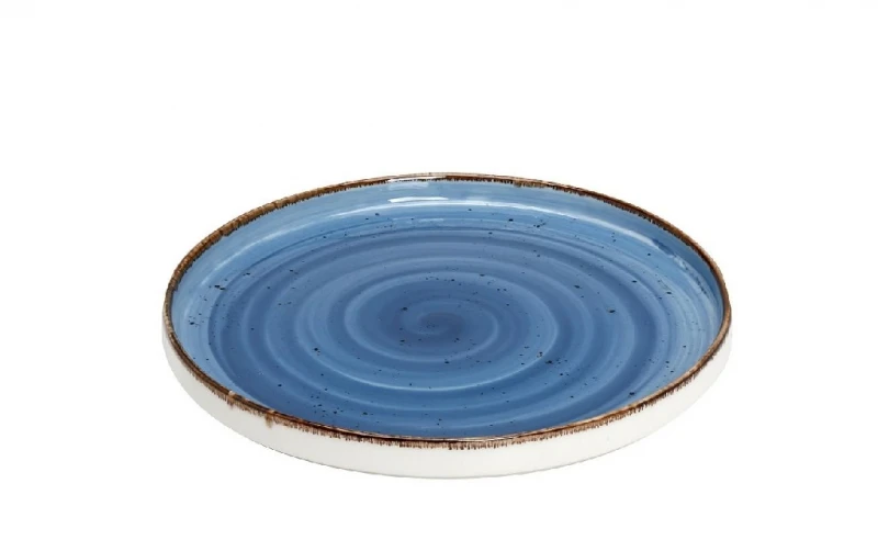 Πιάτο ρηχό φαγητού πορσελάνης σε μπλε χρώμα με καφέ τελείωμα της σειράς Terra από την ESPIEL - Διαστάσεις: 21εκ. - Η ελάχιστη ποσότητα αγοράς για αυτό το προϊόν είναι 6τμχ.