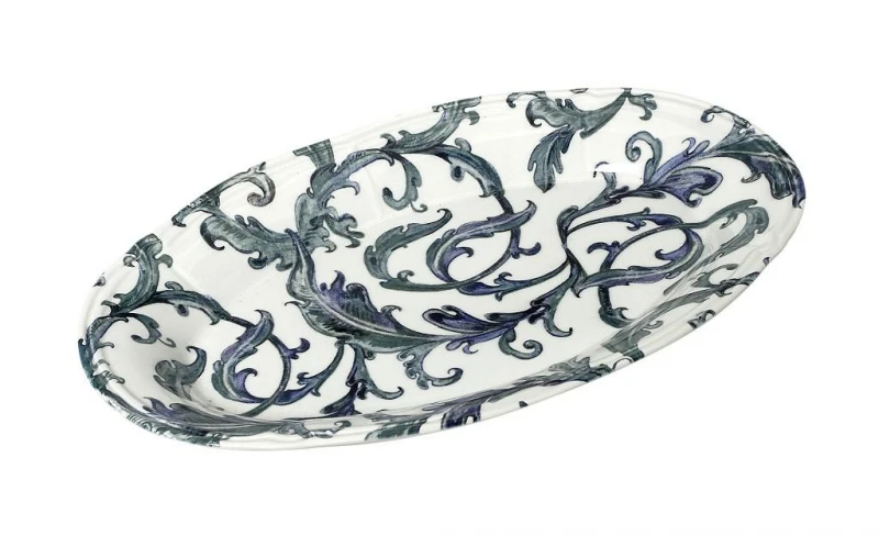Πιατέλα σερβιρίσματος οβάλ stoneware σε μπλε αποχρώσεις με σχέδιο λαχούρι της σειράς Countryside από την ESPIEL - Διαστάσεις: 34x22εκ. - Η ελάχιστη ποσότητα αγοράς για αυτό το προϊόν είναι 2τμχ.