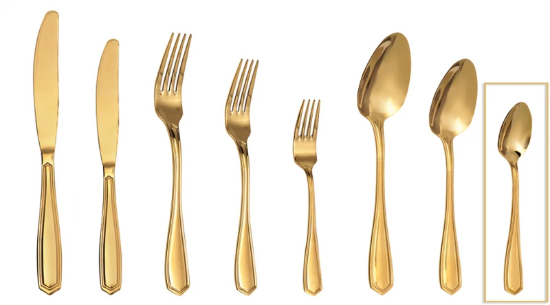 Κουταλάκι γλυκού ανοξείδωτο 18/0, σε χρυσό χρώμα της σειράς Empire από την ESPIEL - Διαστάσεις: 15εκ., Πάχους: 2.5mm - Η ελάχιστη ποσότητα αγοράς για αυτό το προϊόν είναι 12τμχ.