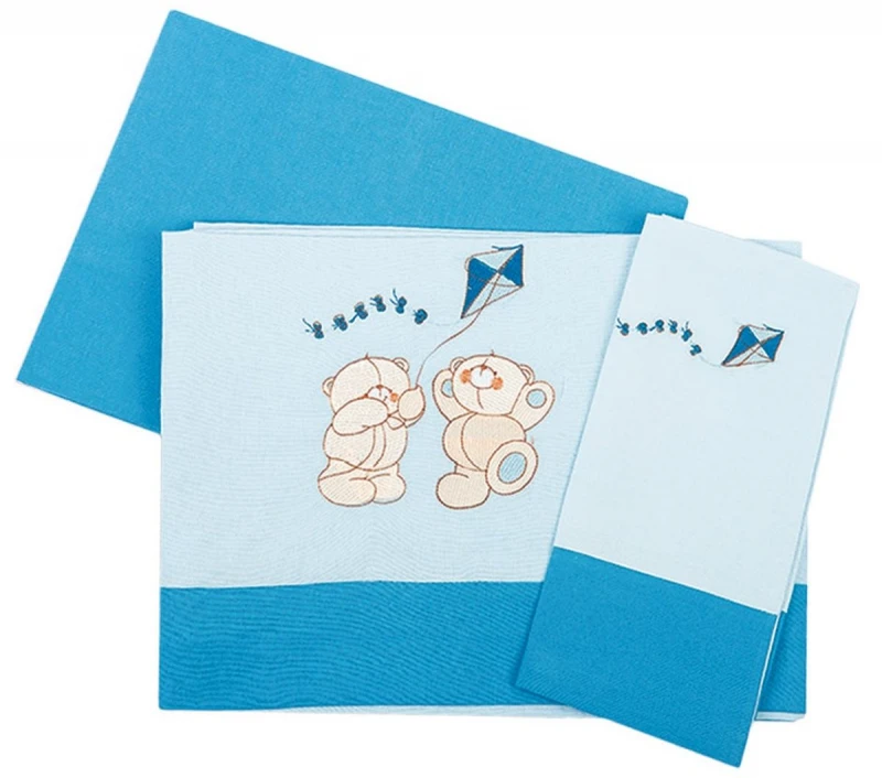 Σετ σεντόνια μπεμπέ με κέντημα και φάσα, 100% βαμβακερά ποιότητας percalle, σε αποχρώσεις σιέλ - λευκό - μπλε από την Dimcol. Το σετ περιλαμβάνει: 2 σεντόνια 120x170εκ. και 1 μαξιλαροθήκη 30x40εκ.