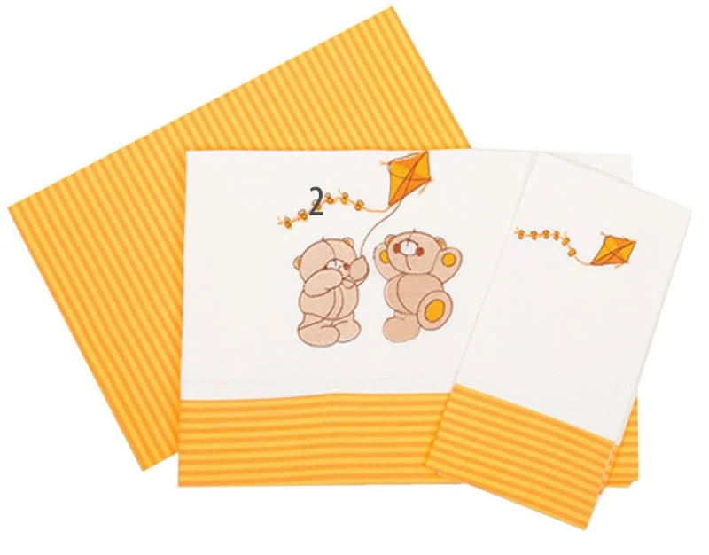 Σετ σεντόνια μπεμπέ με κέντημα και φάσα, 100% βαμβακερά ποιότητας percalle, σε αποχρώσεις πορτοκαλί - κίτρινο - λευκό από την Dimcol. Το σετ περιλαμβάνει: 2 σεντόνια 120x170εκ. και 1 μαξιλαροθήκη 30x40εκ.