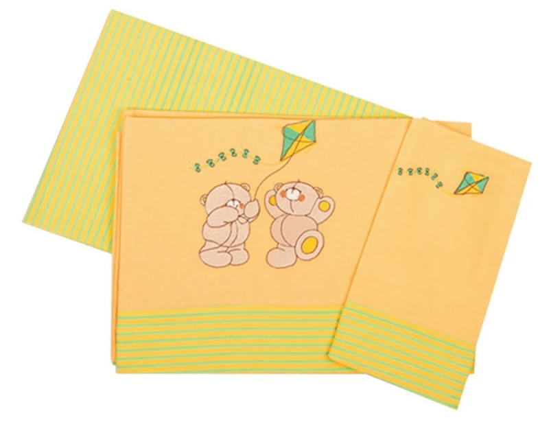 Σετ σεντόνια μπεμπέ με κέντημα και φάσα, 100% βαμβακερά ποιότητας percalle, σε αποχρώσεις λαχανί - πορτοκαλί - κίτρινο από την Dimcol. Το σετ περιλαμβάνει: 2 σεντόνια 120x170εκ. και 1 μαξιλαροθήκη 30x40εκ.