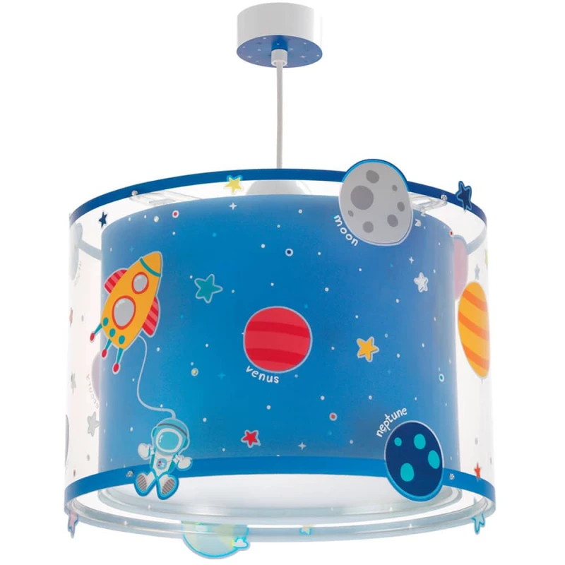Καλωσορίστε το παιδί σας σε ένα δωμάτιο πλημμυρισμένο από μαγεία με αυτό το μεγάλο σε μέγεθος παιδικό φωτιστικό οροφής διπλού τοιχώματος. Έχει δυνατότητα γενικού φωτισμού παρέχοντας ομοιόμορφο και άπλετο φως κάνοντάς το κατάλληλο για όλες τις δραστηριότητες των παιδιών στο διάβασμα αλλά και στο παιχνίδι. Προσθέτει διασκεδαστικό χαρακτήρα και χρώμα σε κάθε παιδικό δωμάτιο ακόμα και στο σκοτάδι με τα τυπωμένα στο εξωτερικό του τοίχωμα φωσφορίζοντα μέρη. Απόλυτα ασφαλές ώστε τα παιδιά να μπορούν να μελετήσουν, να παίξουν και να κοιμηθούν παρέα με τον αγαπημένο τους ήρωα. Συμπεριλαμβάνεται διαχυτής φωτός ο οποίος τοποθετείτε προαιρετικά για ακόμα πιο ομοιόμορφο ή απαλό φωτισμό. Συμπληρώνει τα υπόλοιπα φωτιστικά της συλλογής επιτραπέζιων ή φωτιστικών τοίχου και είναι κατάλληλο για όλες τις νυκτερινές δραστηριότητες. Το Planets κρεμαστό παιδικό φωτιστικό οροφής είναι εξαιρετικά εύκολο στην εγκατάστασή του και παρέχετε με καλώδιο και διακοσμημένη ροζέτα. Κατασκευή: • Συνθετικό, ανακυκλώσιμο υλικό αντοχής (πολυπροπυλένιο, συνθετικά / πλαστικά μέρη) • Διπλού τοιχώματος – διάφανο εξωτερικό Ειδικά χαρακτηριστικά: • Μεγάλο σε μέγεθος και ιδανικό για γενικό φωτισμό • Κατασκευασμένο με διπλό τοίχωμα και ανεξίτηλη εκτύπωση σε διάφανο υλικό • Φωσφορίζοντα μέρη στο εξωτερικό του τοίχωμα • Κιτ ανάρτησης ρυθμιζόμενο στο ύψος κατά την εγκατάσταση (συμπεριλαμβάνεται) • Διακοσμημένη ροζέτα κάλυψης σημείων σύνδεσης & στήριξης • Παρέχεται διαχυτής φωτός για ομοιόμορφο φωτισμό Τεχνικές προδιαγραφές: • Τροφοδοσία ρεύματος: Εύρος 220 V - 240 V • Υποδοχή ντουί: Τύπου E27 • Αριθμός λαμπτήρων: 1 (δε συμπεριλαμβάνεται) • Λειτουργία με λαμπτήρα LED ή οικονομίας 23W max. • Ενεργειακή κλάση: A ++ • Ασφάλεια με πιστοποιήσεις στους κανόνες της ΕΕ.