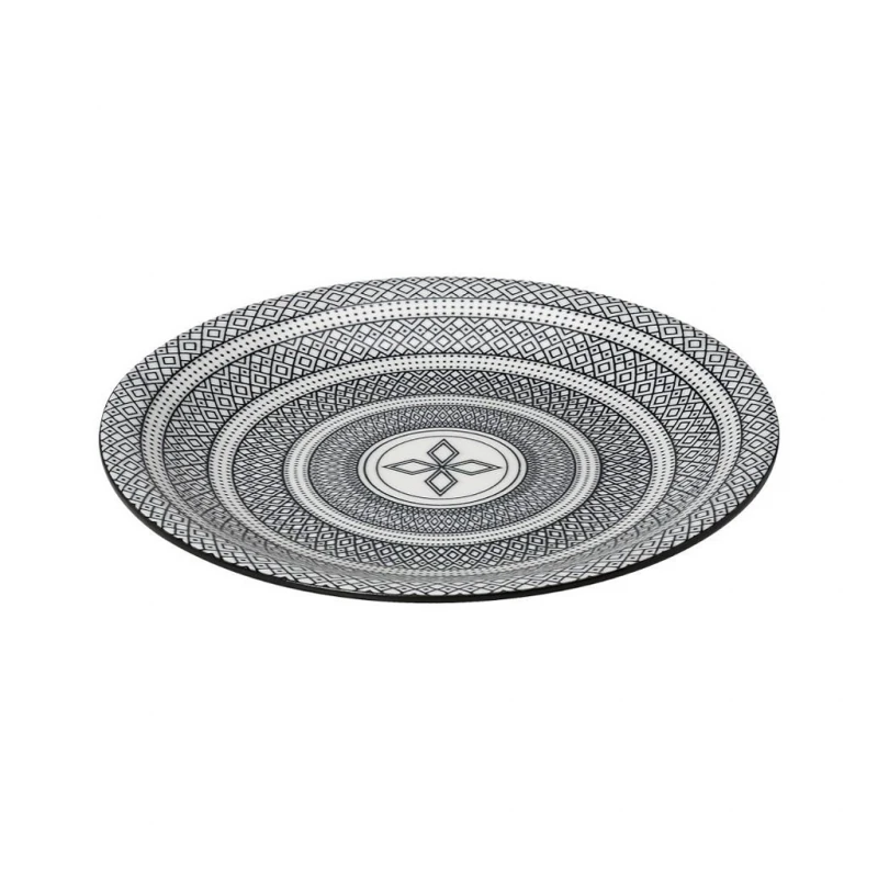 Πιάτο ρηχό φαγητού stoneware σε λευκό - μαύρο χρώμα της σειράς Charlotte από την ESPIEL - Διαστάσεις: 26,5εκ. - Η ελάχιστη ποσότητα αγοράς για αυτό το προϊόν είναι 6τμχ.