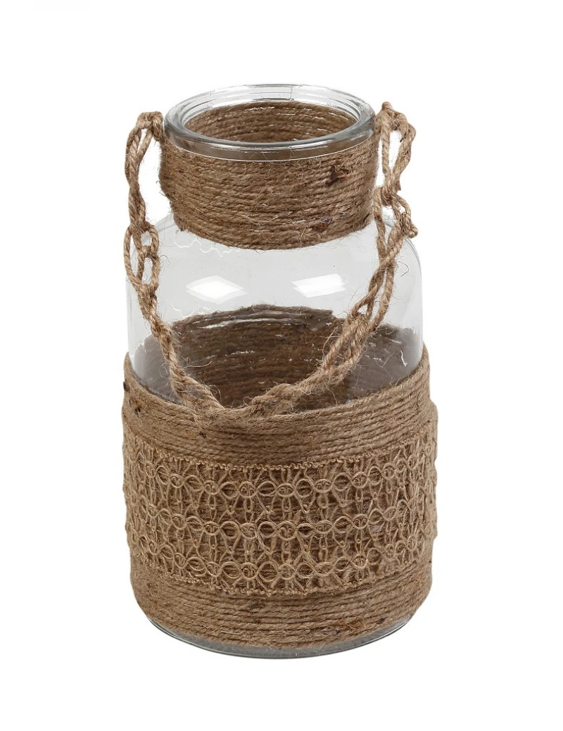 Φανάρι γυάλινο με καφέ πλέξη από την ESPIEL - Διαστάσεις: 18x30εκ.