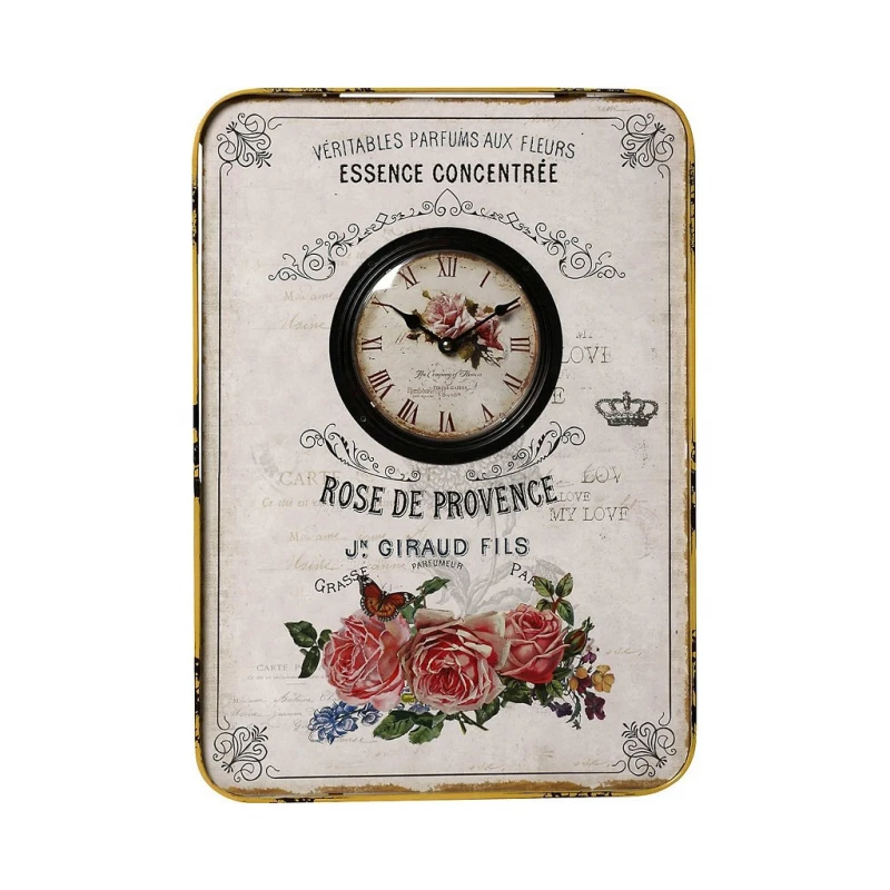 Ρολόι τοίχου μεταλλικό "Rose De Provence" από την ESPIEL - Διαστάσεις: 39,5x54,5εκ.