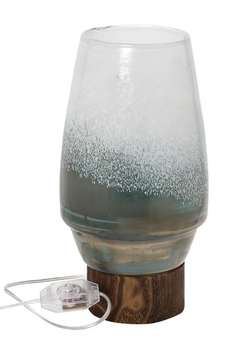 Φωτιστικό επιτραπέζιο γυάλινο με ξύλινη βάση σε χρυσό - λευκό χρώμα από την ESPIEL - Διαστάσεις: 18x33εκ.