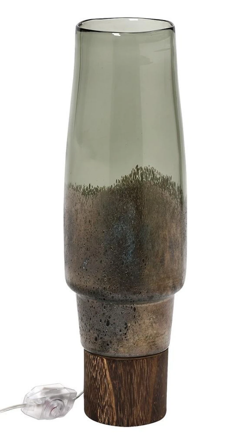 Φωτιστικό επιτραπέζιο γυάλινο με ξύλινη βάση σε χρυσοπράσινο χρώμα από την ESPIEL - Διαστάσεις: 15x50εκ.