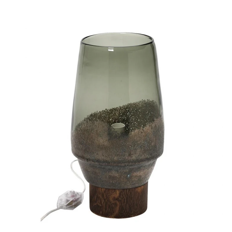 Φωτιστικό επιτραπέζιο γυάλινο με ξύλινη βάση σε χρυσοπράσινο χρώμα από την ESPIEL - Διαστάσεις: 21,5x34,5εκ.