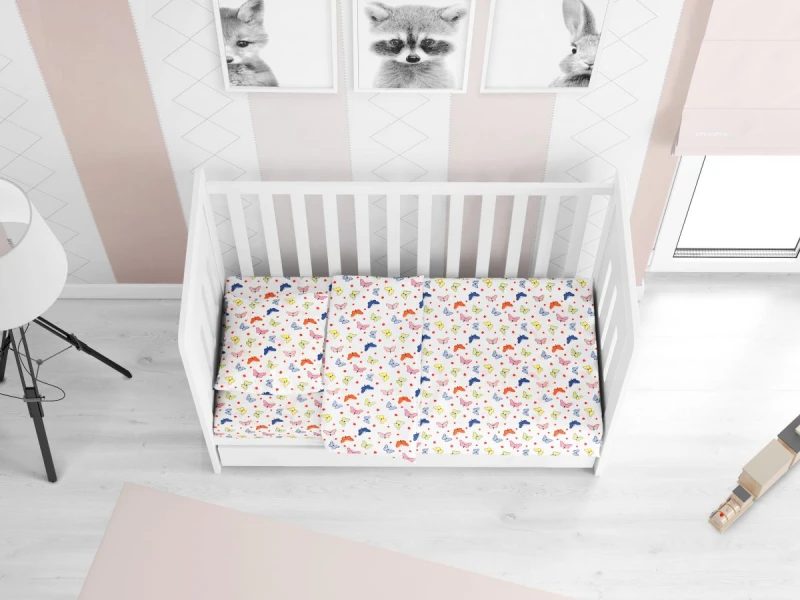 Σεντόνι κούνιας με λάστιχο, μεμονωμένο, 100% βαμβακερό με σχέδιο πεταλούδα από την Dimcol - Διαστάσεις: 70x140+15εκ.