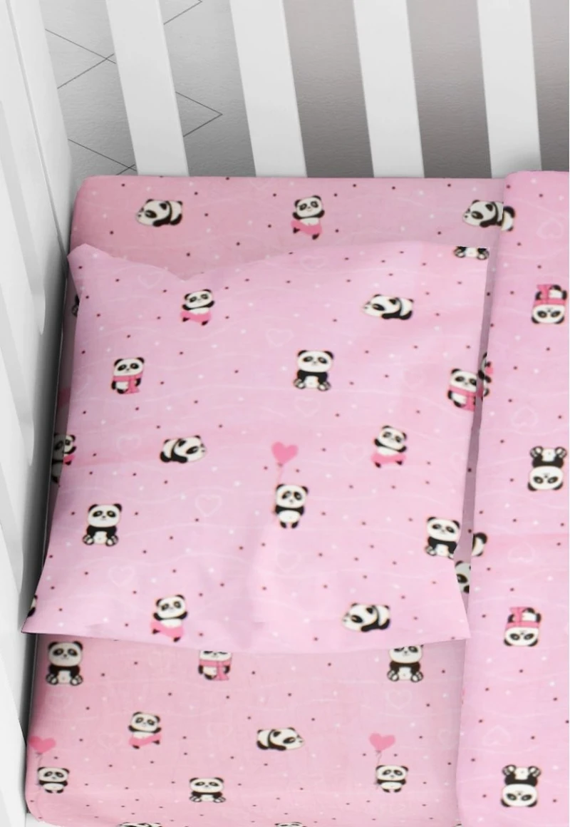 Μαξιλαροθήκη φάκελος bebe εμπριμέ, 100% βαμβακερή, 144 κλωστών, με σχέδιο panda σε ροζ χρώμα από την Dimcol - Διαστάσεις: 35x45εκ.
