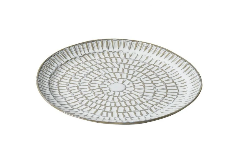 Διακοσμητική πιατέλα κεραμική σε λαδί - λευκό χρώμα από την ESPIEL - Διαστάσεις: 35,7x3,1εκ.