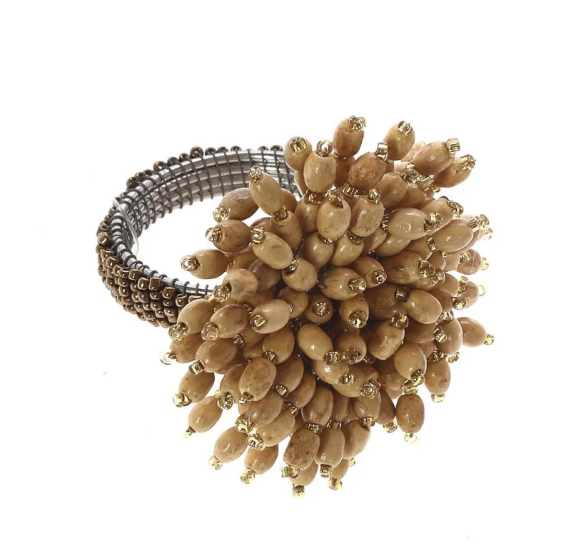 Δαχτυλίδι πετσέτας μεταλλικό διακοσμημένο με ξύλινες χάντρες σε μπεζ χρώμα από την ESPIEL - Διαστάσεις: 6,45εκ. - Η ελάχιστη ποσότητα αγοράς για αυτό το προϊόν είναι 6τμχ.