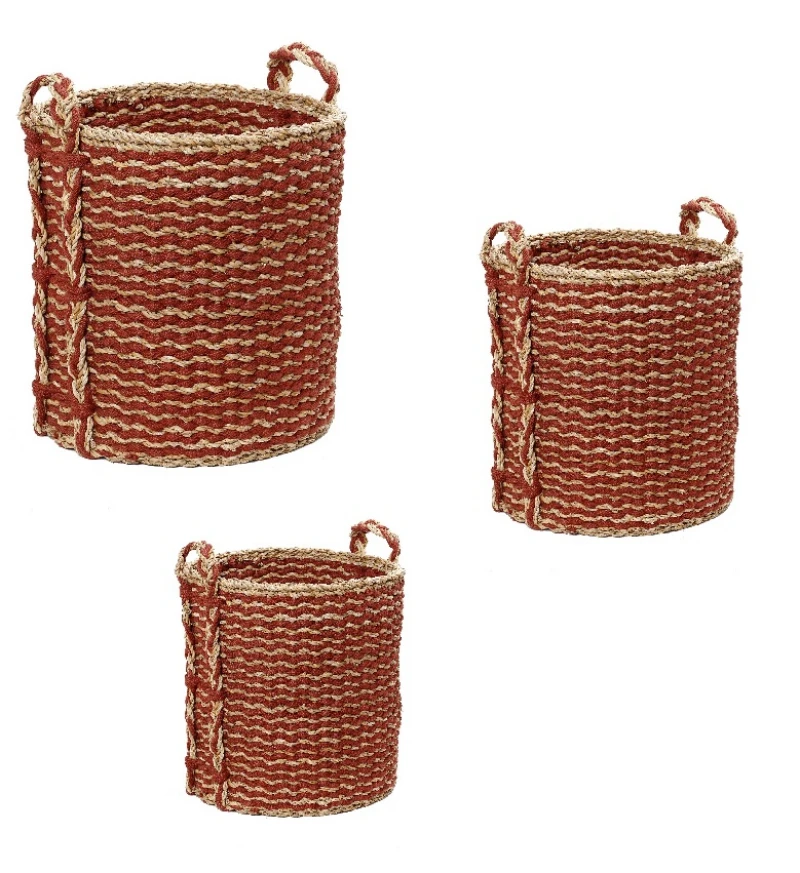 Καλάθι σετ 3τμχ στρογγυλό με χερούλια σε κόκκινο χρώμα από την ESPIEL - Διαστάσεις: 50εκ., 45εκ., 40εκ.
