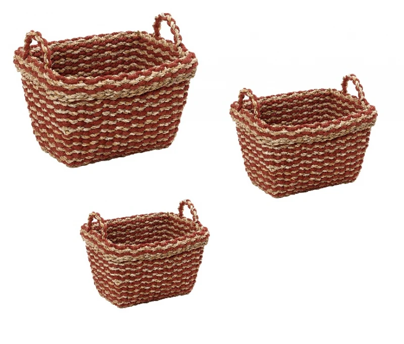 Σετ καλάθι 3τμχ ορθογώνιο με χερούλια σε κόκκινο χρώμα από την ESPIEL - Διαστάσεις: 45εκ., 40εκ., 33εκ.