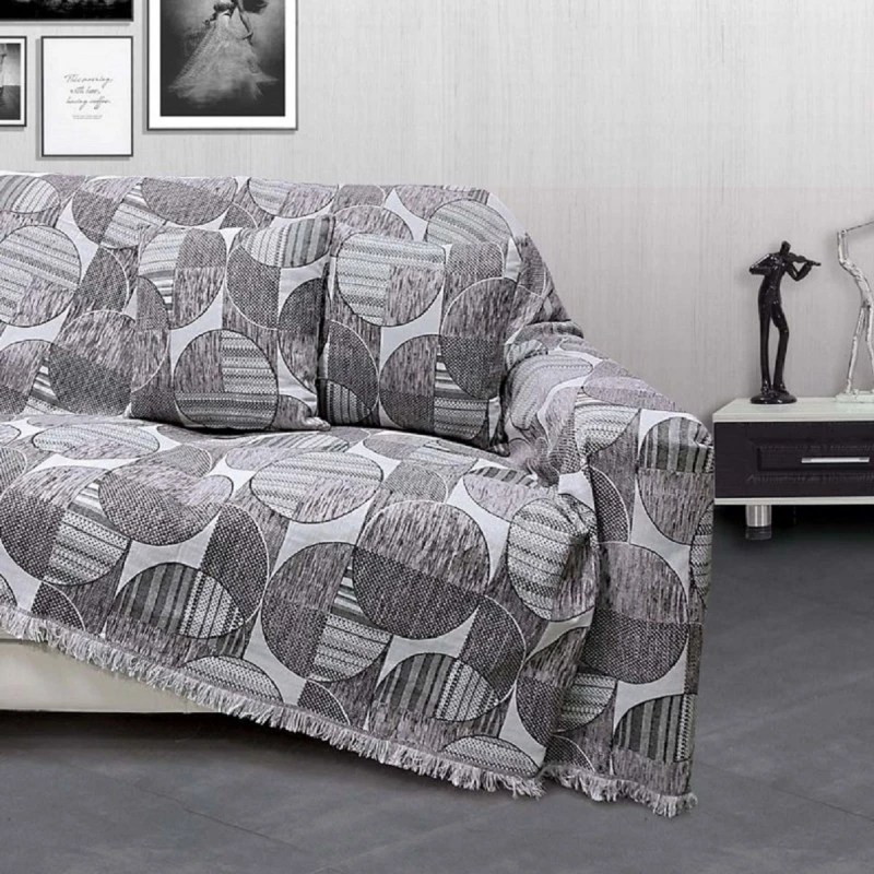 Ριχτάρι σενίλ ζακάρ (chenille jacquard) σε γκρι χρώμα της σειράς Floreny Collection από την Sb home - Διαστάσεις: Πολυθρόνας 180x160εκ.