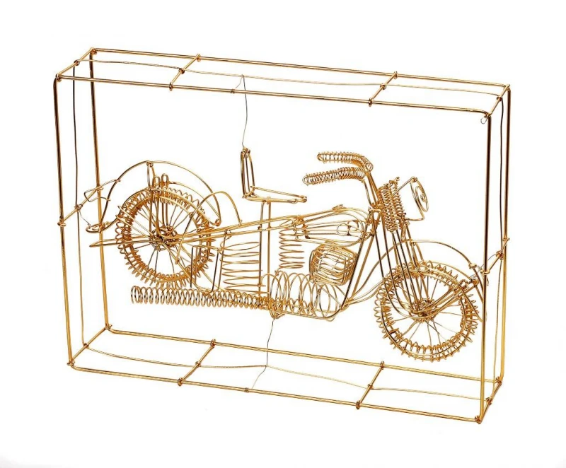 Διακοσμητικό μοτοσυκλέτα χειροποίητο, συρμάτινο σε χρυσό χρώμα από την ESPIEL - Διαστάσεις: 31,5x23,5x8εκ.