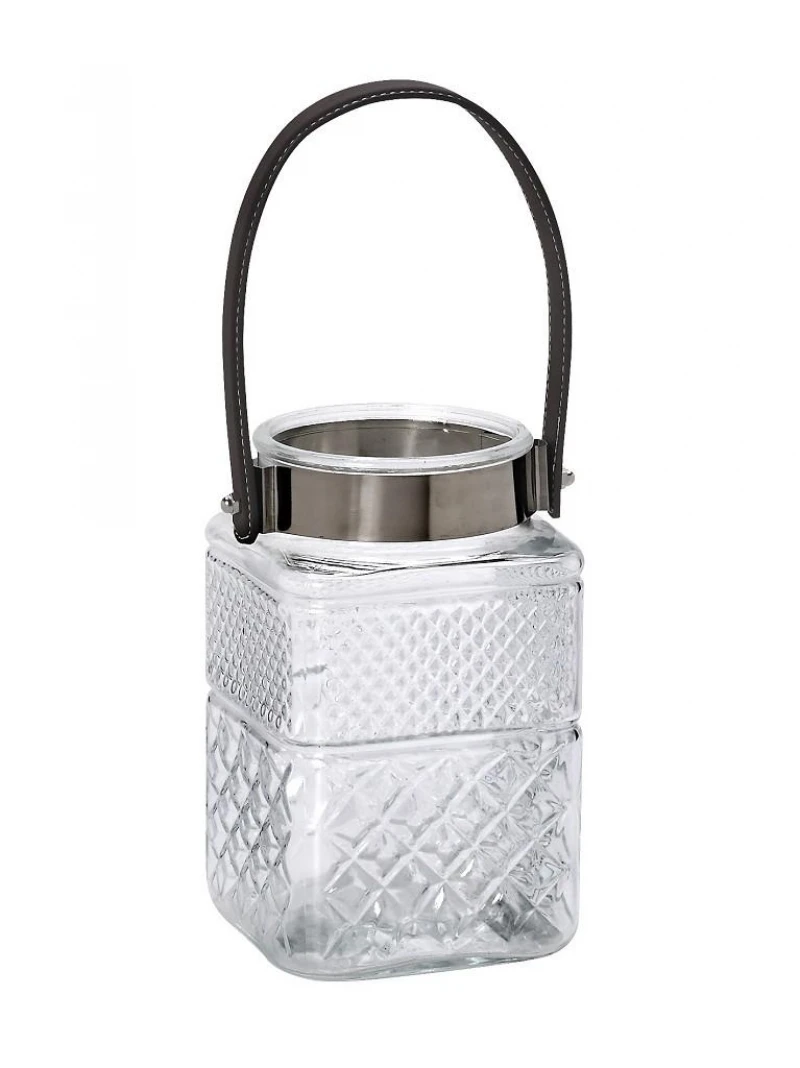 Φανάρι διακοσμητικό διάφανο με δερμάτινη λαβή απο την ESPIEL - Διαστάσεις: 12x12x19εκ.
