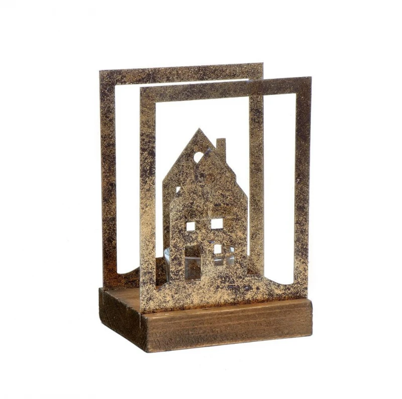 Χριστουγεννιάτικο κηροπήγιο με ξύλινη βάση για ρεσώ σε χρυσό χρώμα από την ESPIEL - Διαστάσεις: 12x9,5x18εκ. - Η ελάχιστη ποσότητα αγοράς για αυτό το προϊόν είναι 4τμχ.
