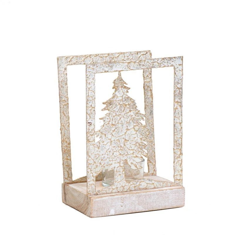 Χριστουγεννιάτικο κηροπήγιο με ξύλινη βάση για ρεσώ σε εκρού-σαμπανί χρώμα από την ESPIEL - Διαστάσεις: 12x9,5x17,5εκ. - Η ελάχιστη ποσότητα αγοράς για αυτό το προϊόν είναι 4τμχ.