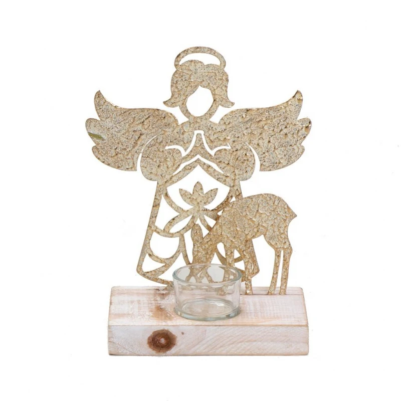Χριστουγεννιάτικο κηροπήγιο με ξύλινη βάση για ρεσώ σε εκρού-σαμπανί χρώμα από την ESPIEL - Διαστάσεις: 15x9,5x21,5εκ. - Η ελάχιστη ποσότητα αγοράς για αυτό το προϊόν είναι 4τμχ.