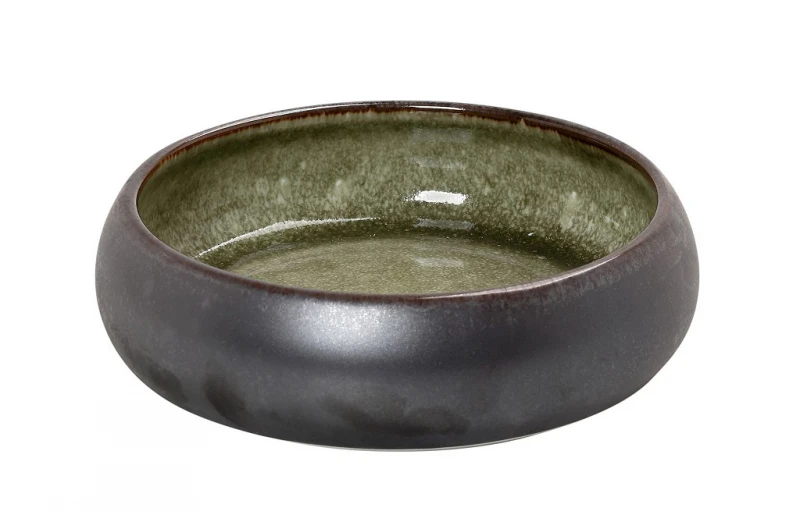 Μπωλ σερβιρίσματος stoneware στρογγυλό σε καφέ - πράσινο χρώμα Pebble από την ESPIEL - Διαστάσεις: 22x6εκ.