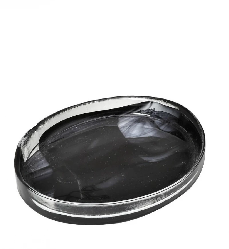 Πιατέλα σερβιρίσματος οβάλ γυάλινη Atlas Alabaster σε μαύρο χρώμα από την ESPIEL - Διαστάσεις: 21x16,5x3,5εκ. - Η ελάχιστη ποσότητα αγοράς για αυτό το προϊόν είναι 6τμχ.