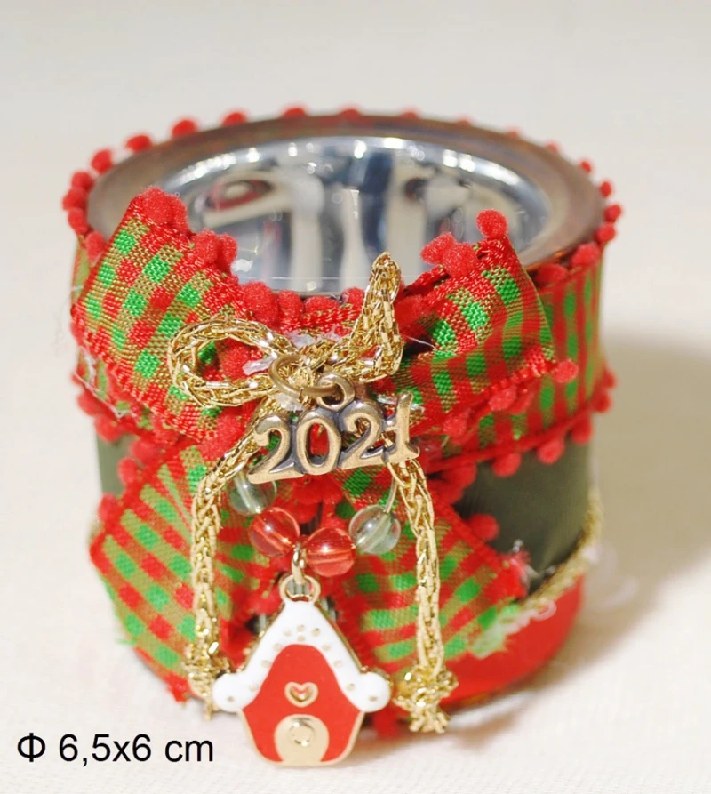 Κηροπήγιο ρεσώ γυάλινο με κόκκινη κορδέλα, χρυσό φιόγκο και σπιτάκι από την Royal Art - Διαστάσεις: 6,5x6εκ.
