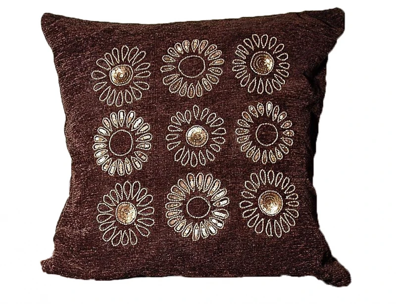 Διακοσμητική μαξιλαροθήκη σενίλ σε χρώμα χρυσό, κεντημένο με πιέτες από την Royal Art - Διαστάσεις: 45x45εκ.