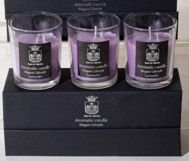 Σετ 3τμχ κεριά αρωματικά σε γυάλινο ποτηράκι με άρωμα λεβάντας σε μαύρο κουτί δώρου από την Royal Art - Διαστάσεις: 5,5x7εκ.