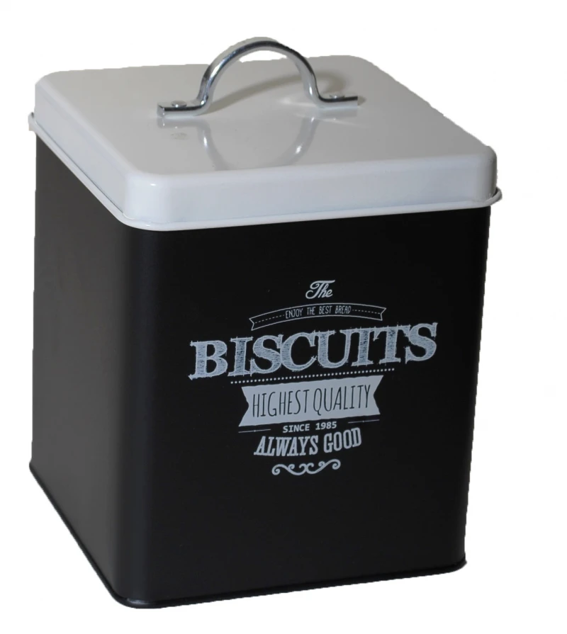 Μπισκοτιέρα τετράγωνη μεταλλική σε χρώμα μαύρο με λευκό καπάκι από την Royal Art - Διαστάσεις: 14x14x20εκ.