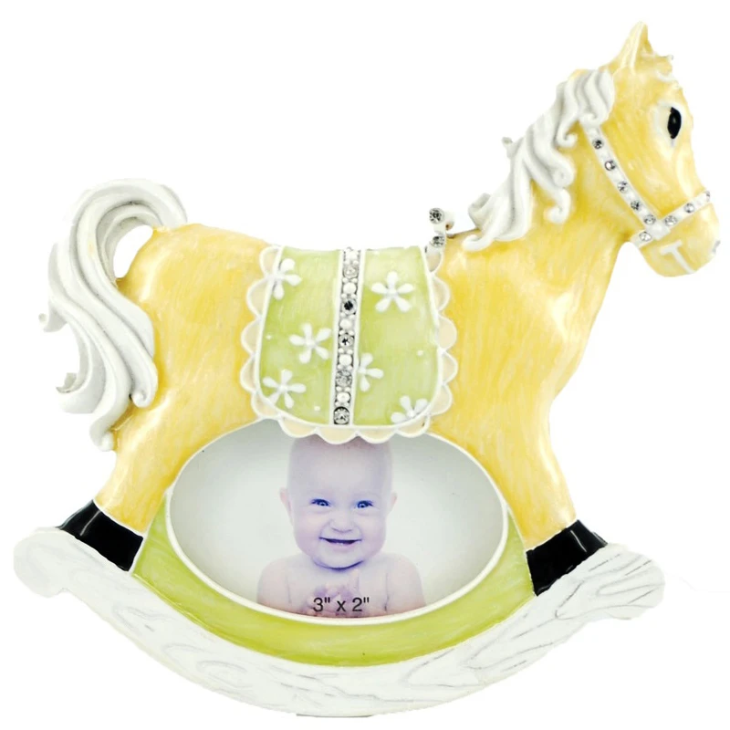 Κορνίζα παιδική πολυεστερική χειροποίητη σε σχήμα αλόγου σε γαλάζιο - λευκό χρώμα με στρας τύπου swarovski από την Royal Art - Διαστάσεις: 14x15εκ.