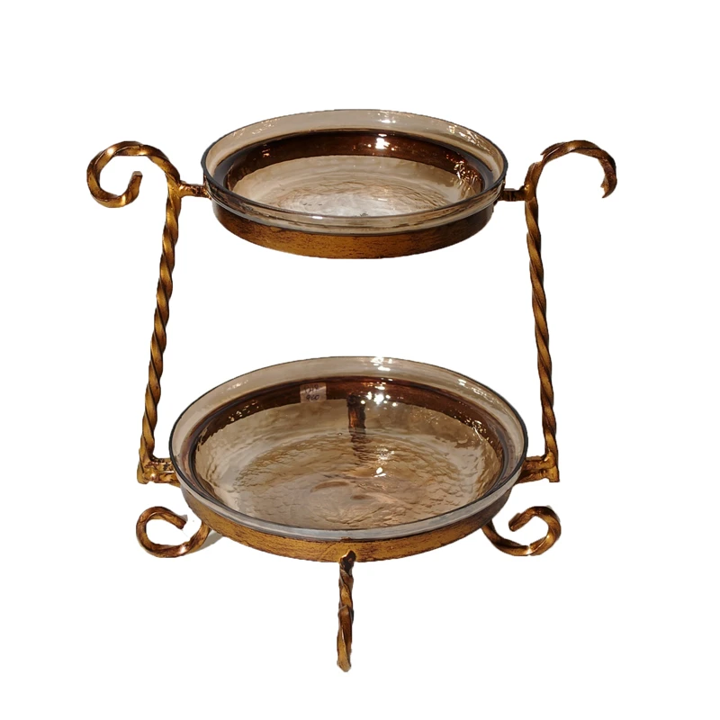 Ορντεβιέρα 2όροφη μπρούτζινη παλαιωμένη με γυαλί και μεταλλική βάση σε χρώμα μελί από την Royal Art - Διαστάσεις: 30x32εκ.