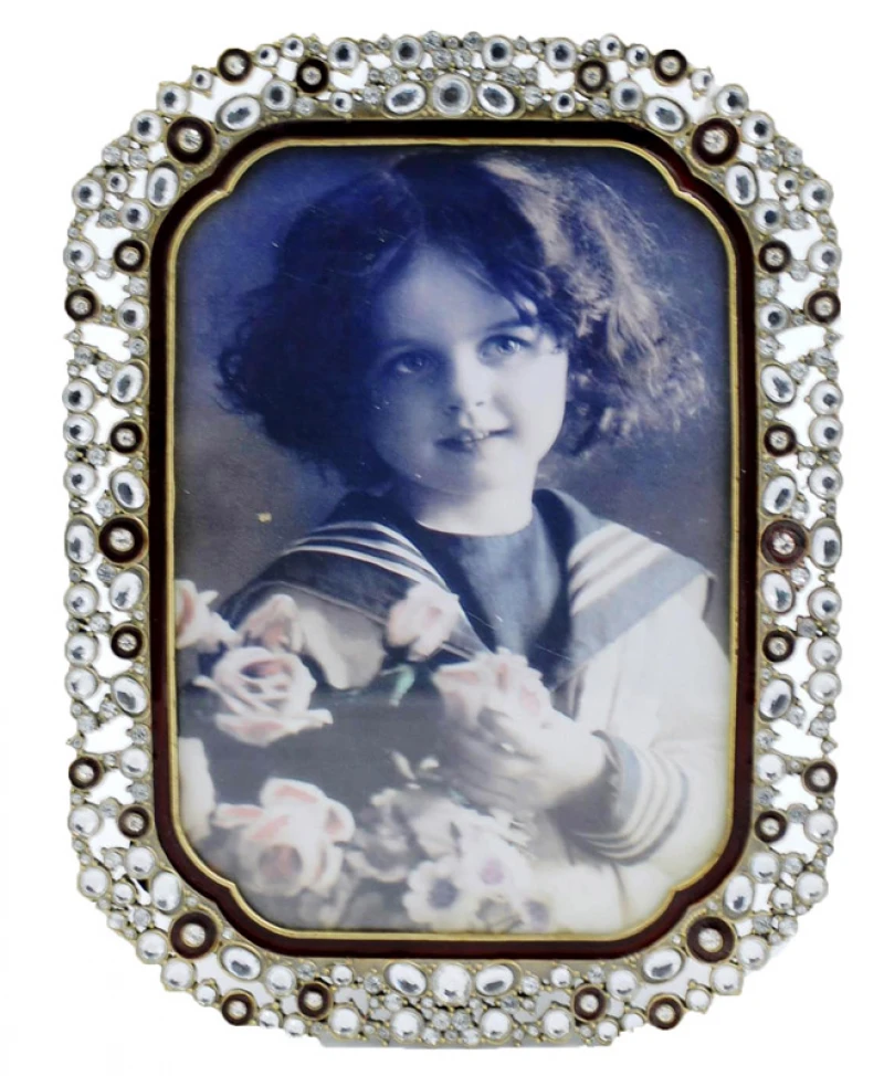 Κορνίζα μεταλλική με λευκά στρας τύπου swarovski και μπορντώ σμάλτο στο πλαίσιο της κορνίζας από την Royal Art - Διάσταση φωτογραφίας: 13x18εκ.