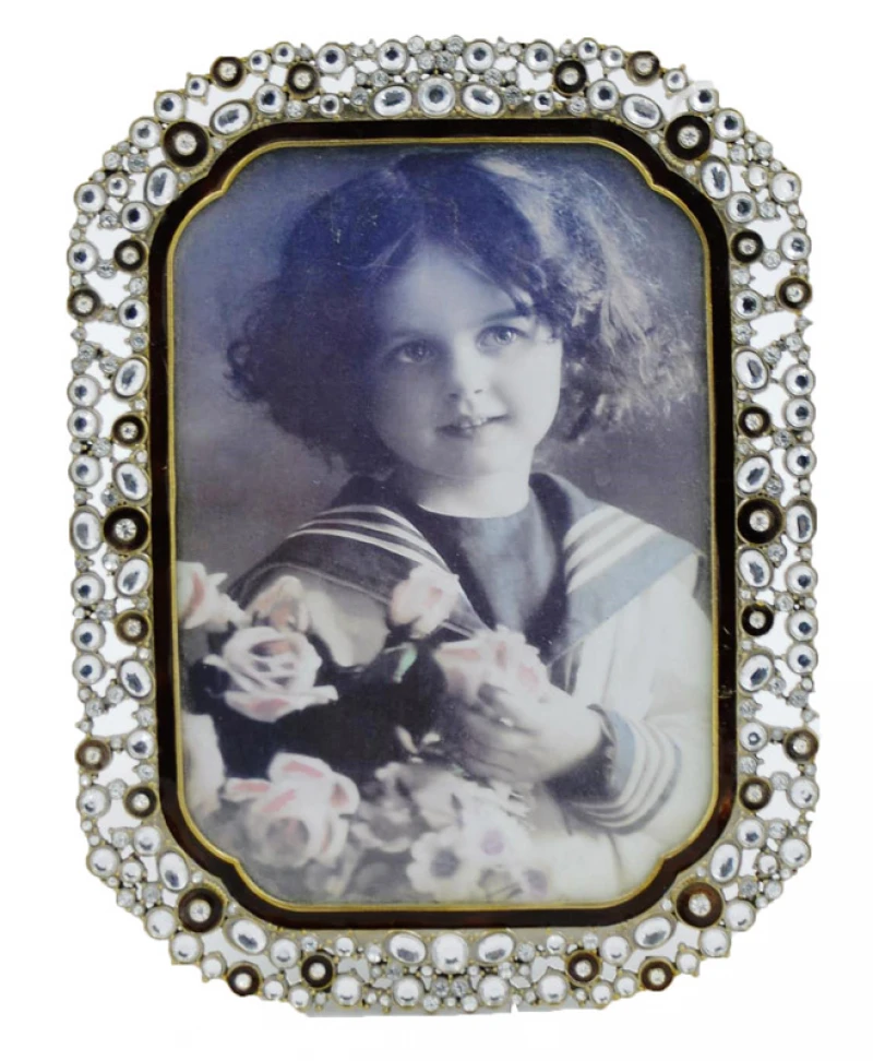 Κορνίζα μεταλλική με λευκά στρας τύπου swarovski και καφέ σμάλτο στο πλαίσιο της κορνίζας από την Royal Art - Διάσταση φωτογραφίας: 13x18εκ.