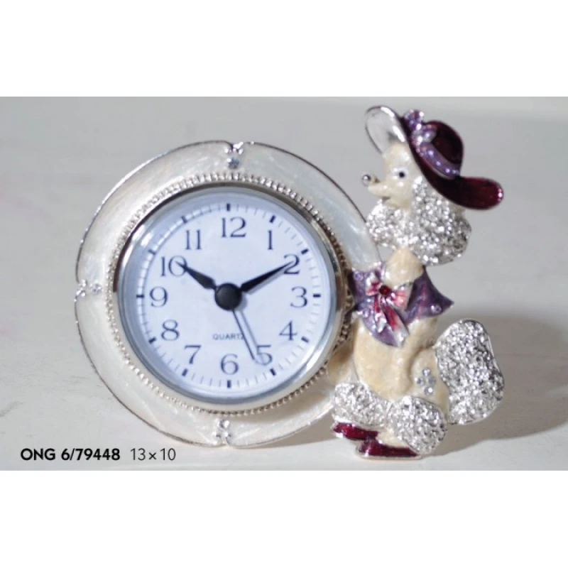 Ρολόι επιτραπέζιο - χειροποίητο - πολυεστερικό επενδυμένο με σμάλτο και στρας τύπου swarovski με σχέδιο σκυλάκι από την Royal Art - Διαστάσεις: 13x10εκ.
