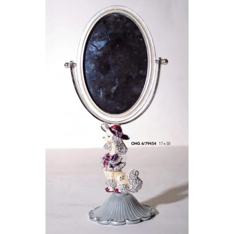 Καθρέπτης μακιγιάζ χειροποίητος - επιτραπέζιος - πολυεστερικός επενδυμένος με σμάλτο και στρας τύπου swarovski με σχέδιο σκυλάκι από την Royal Art - Διαστάσεις: 17x32εκ.