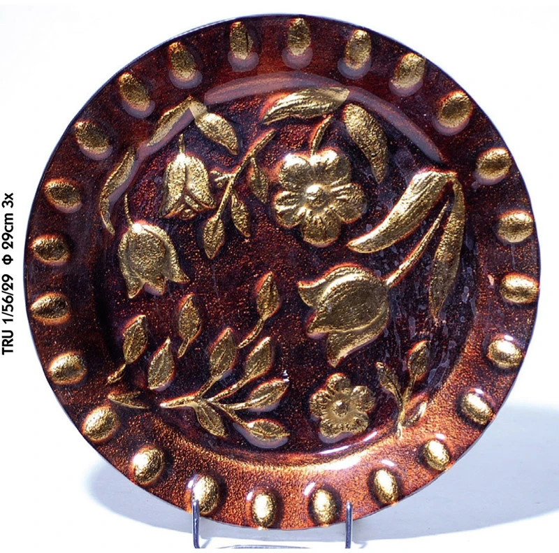 Διακοσμητική πιατέλα γυάλινη στρογγυλή με ανάγλυφα λουλούδια, χειροποίητη από την Royal Art Collection - Διαστάσεις: 29x3εκ.