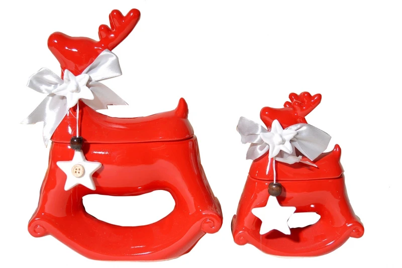 Χριστουγεννιάτικος διακοσμητικός επιτραπέζιος τάρανδος σετ 2τμχ κεραμικός σε κόκκινο χρώμα διακοσμημένος με αστέρι από την Royal Art Collection - Διαστάσεις: 22εκ., 14εκ.