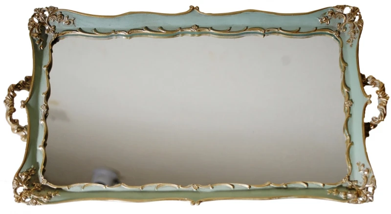 Δίσκος σερβιρίσματος με καθρέπτη πολυεστερικός σε αντικέ χρυσό - πράσινο χρώμα από την Royal Art Collection - Διαστάσεις: 34x22εκ.