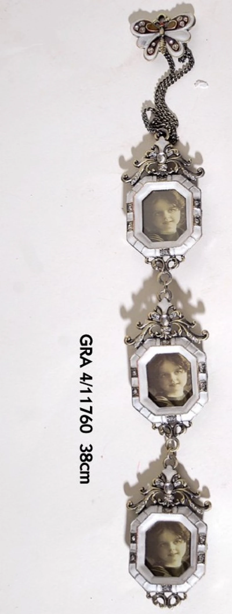 Πολυκορνιζάκι τοίχου μεταλλικό επενδυμένο με λευκό σμάλτο και στρας τύπου swarovski με διακριτική πεταλούδα στο τελείωμα της αλυσίδας από την Royal Art - Διάσταση: 38εκ.