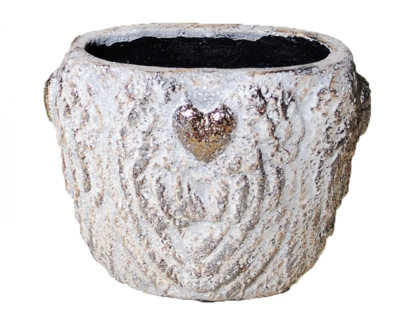 Βάζο κεραμικό Terracotta σε μπρονζέ χρώμα με πετρώδες ανάγλυφο από την Royal Art - Διαστάσεις: 21x15x16εκ.